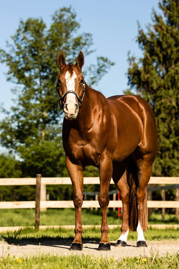 Rosie is a 2016 Chestnut mare by Favored By All out of Sweetest Intentions. Favored By All is an ABRA Hall of Fame inductee and ABRA World and NSBA Reserve World Champion producing sire. Rosie was to be my show horse prior to suffering from an injury late 2019 and is now the foundational mare to my AQHA breeding program. Rosie is a very sweet mare without a mean bone in her body that loves being brushed and hates apples.